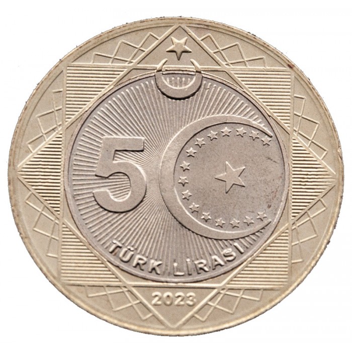 100. Yıl temalı 5 TL Tedavül Hatıra Paranın; İç göbeğinde Türkiye Yüzyılı logosu kullanılmıştır. Logonun üzerinde 5 ibaresi, alt kısmında ise Türk Lirası ibaresi bulunmaktadır. Dış halkada sekiz köşeli Selçuklu Yıldızı motifi ve bu motifin dış hatlarının tekrarı kullanılarak derinlik kazandırılmıştır. Ağırlığı 8.25 gram, çapı 28.15 milimetredir.